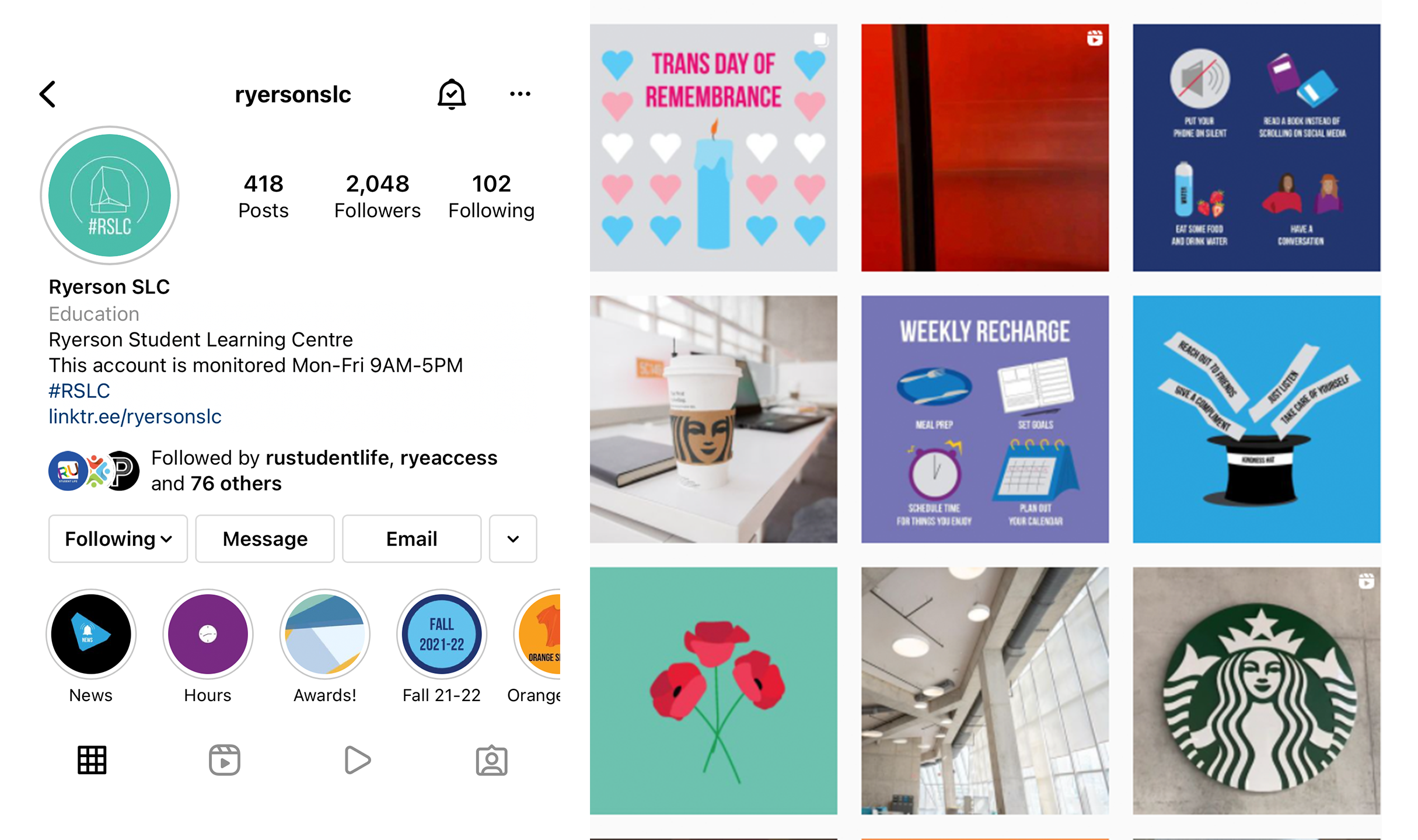 I create social media content and assist with communications for the iconic SLC at Ryerson University. This ranges from planning Instagram content, student-engaging campaigns, writing blog posts, producing videos, illustrating graphics and more. During my time at the SLC, I have helped grow their Instagram from 0 to over 2000 followers in just 2 years.